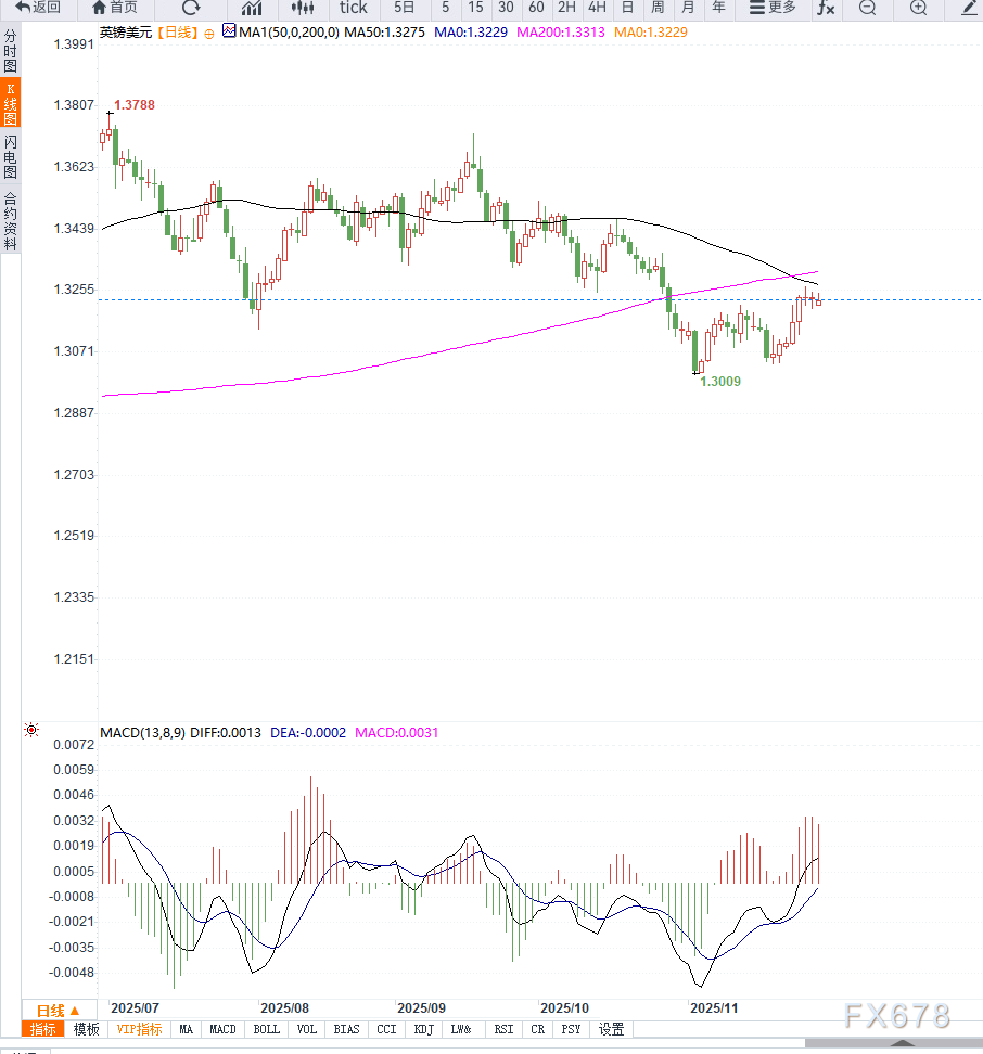 技术面最关键的信号是:汇价已多次在1.3150—1.3180区间获得支撑,该区域构成当前阶段性的多头防守带。若后续能突破1.3300上方压制,将有望开启新一轮上行测试1.3420的中期阻力。