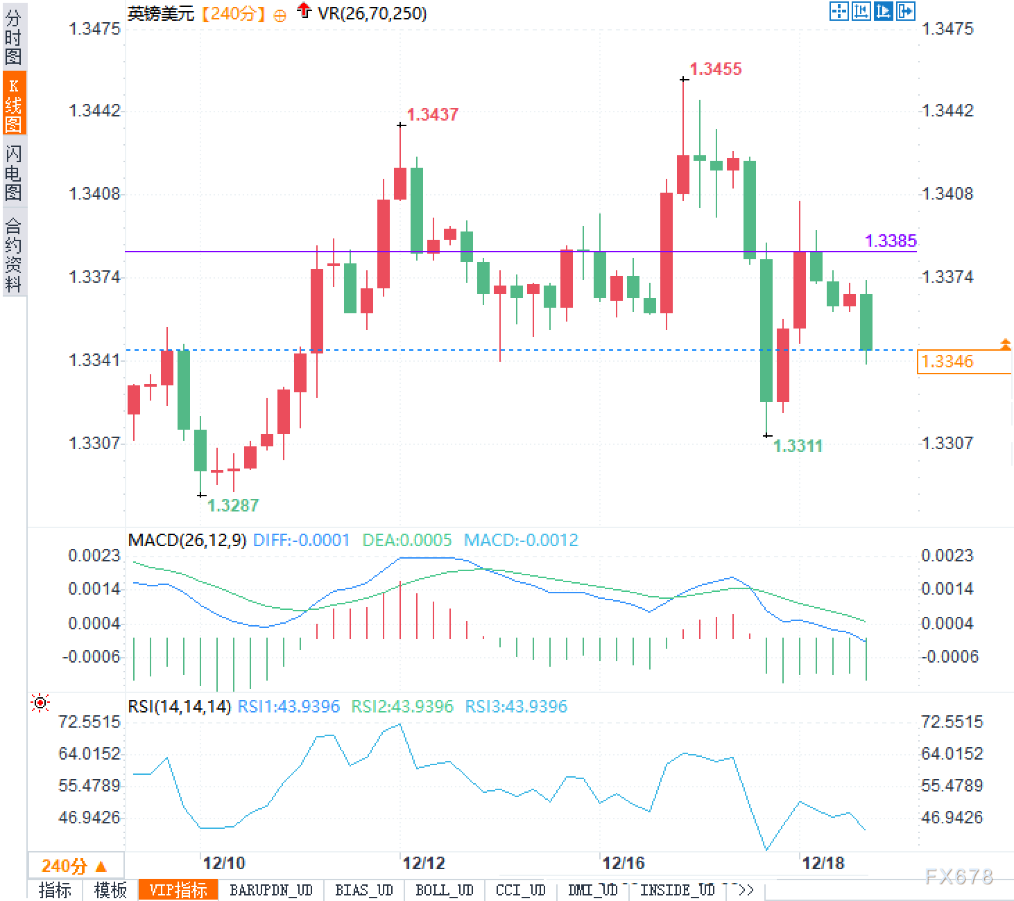 以240分钟图观察,前期上冲在1.3437与1.3455附近形成阶段高点后,汇价出现回撤并一度下探至1.3311,早前更低的摆动低点在1.3287一带。当前价格位于回撤后的修复区间内,说明市场在英国央行决议前并未形成一致方向押注,而是通过区间交易与仓位控制等待确定性信号。1.3385附近的横向价位更像是短线多空的分水岭:多次触及后的反复拉扯,反映了上方抛压与下方承接同时存在,任何一端的突破都更可能由政策信息触发,而不是由单一技术因素自然推导。